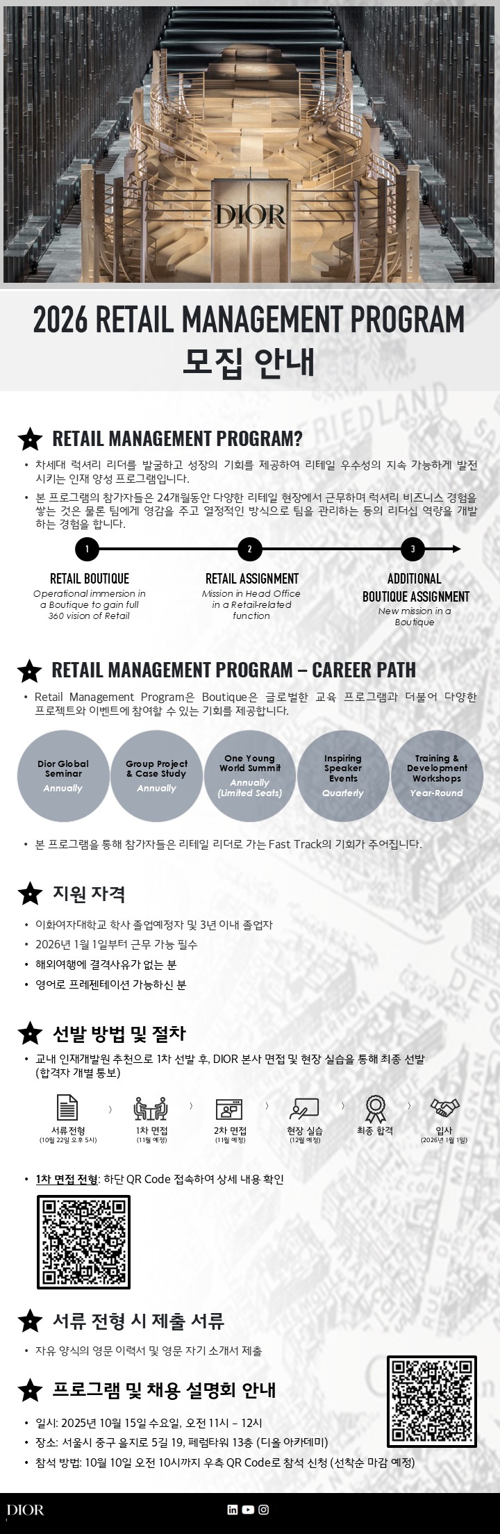 [경력] [인재개발원] 크리스챤 디올 2026 Retail Management Program 추천 채용 모집